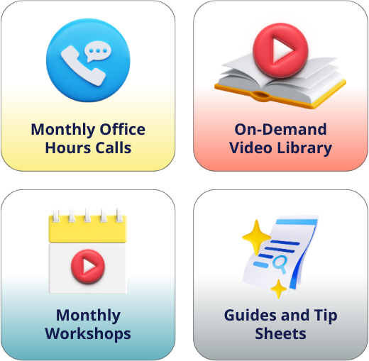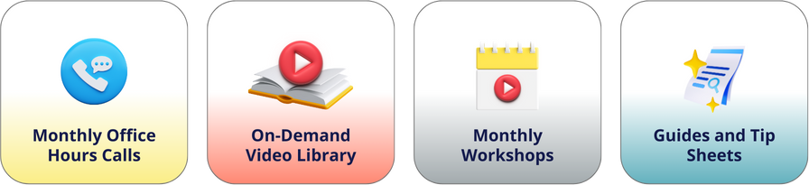 Office Hours are held each month via Zoom or a similar program. You can join the live call to get your questions answered or submit your questions in advance to be answered on the call. Calls will be recorded in case you can't watch live.