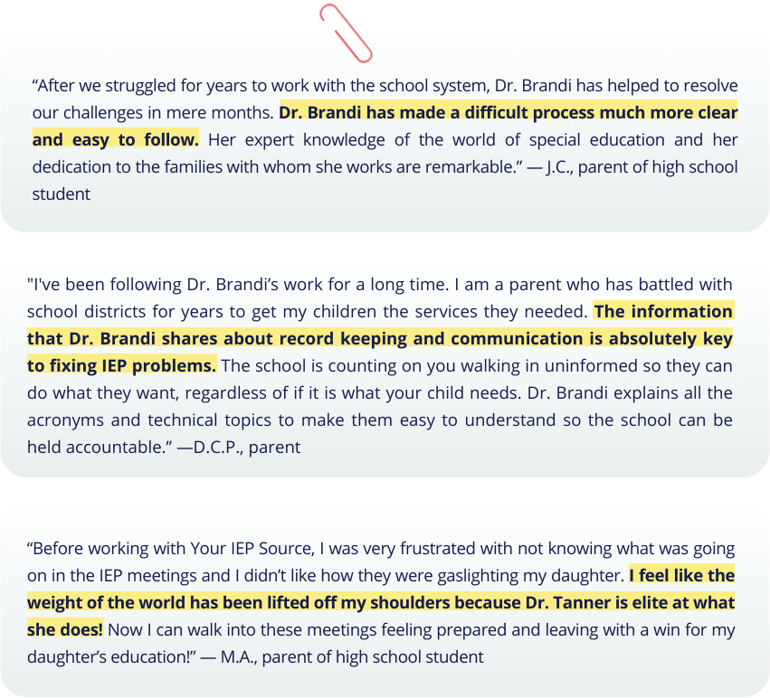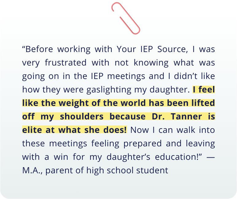 If that sounds like you, immediately after joining Your IEP Source Membership, you can also book an IEP Strategy Roadmap to give you that step-by-step plan, learn about my high-touch 1:1 advocacy packages, or schedule discounted 1:1 calls with me. And since you’re a member, I’ll be able to point you to specific resources to help you prepare for our conversations. Win-win.
